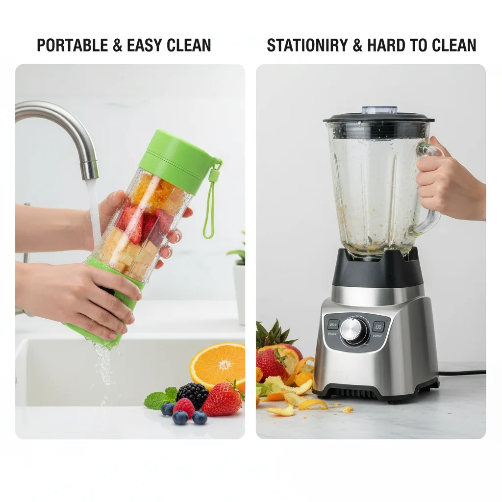 على عكس الخلاطات التقليدية الكبيرة والمقيدة بالأسلاك، يقدم خلاط الفواكه العجيب حرية غير مسبوقة. بست شفرات قوية، يفوق أداء العديد من الخلاطات المحمولة الأخرى التي غالبًا ما تحتوي على شفرتين أو أربع شفرات فقط، مما يضمن خلطًا أكثر كفاءة ونعومة. قابليته لإعادة الشحن عبر USB تعني أنه يمكنك شحنه بسهولة من أي منفذ USB، سواء كان شاحن هاتفك، بنك الطاقة، أو حتى جهاز الكمبيوتر المحمول الخاص بك. بالإضافة إلى ذلك، تصميمه المقاوم للماء يجعله سهل التنظيف للغاية، فقط أضف الماء والصابون واخلط! إنه الحل المتكامل لحياة صحية وسهلة.