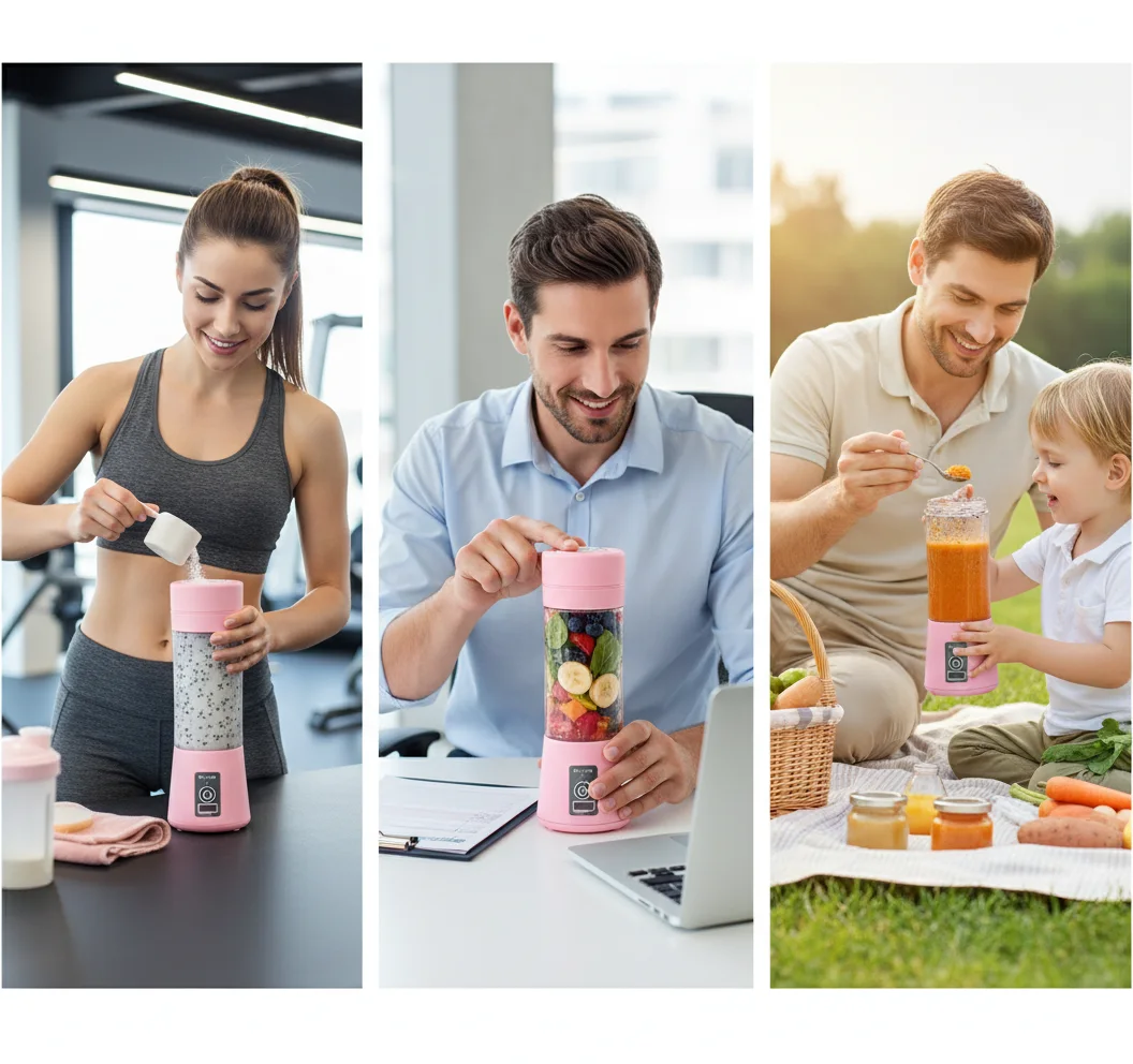 تصور أنك تستطيع تحضير عصيرك المفضل في صالة الألعاب الرياضية بعد التمرين، أو في مكتبك خلال استراحة الغداء، أو حتى أثناء نزهة في الطبيعة. هذا هو الوعد الذي يقدمه لك الخلاط العجيب. قابليته للشحن عبر أي منفذ USB (باور بانك، لابتوب، شاحن سيارة) تمنحك استقلالية تامة، فلا قيود بعد اليوم على مكان أو زمان تحضير مشروباتك الصحية.
